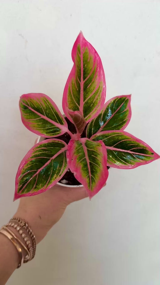 To keep the Aglaonema Lotus Delight looking its best, place it in moderate, indirect light and allow the top one to two inches of soil to dry before watering. Maintaining higher humidity, such as by using a humidifier or placing it in a naturally humid area, helps preserve the brightness of its leaves. Feeding with a balanced, diluted fertilizer during watering encourages steady growth and vivid colors. Because of its limited availability, this super rare Aglaonema offers an exclusive and eye-catching element to any indoor plant collection.