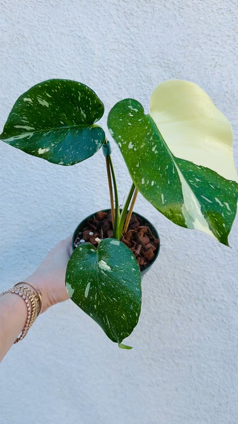 The Thai Constellation is a rare houseplant known for its striking variegation, featuring white and cream patterns on its green leaves. This 4" plant is a popular choice among collectors due to its unique appearance and ease of care. Originating from Thailand, the Thai Constellation is part of the Epipremnum family, making it a member of the same group as the Pothos.