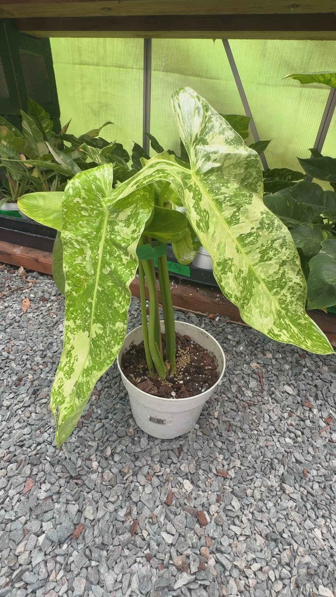 The Jose Bueno Philodendron is for sale at Plant Vault, a rare tropical plant that stands out for its striking, uniquely variegated foliage. This rare houseplant features large, glossy, heart-shaped leaves with beautiful marbling in shades of green, yellow, and white. The variegation can be quite dramatic, with creamy white streaks and bold yellow patches creating an almost painterly effect on each leaf. As the plant matures, the leaves grow larger, further enhancing its elegant and tropical appearance. Native to the tropical rainforests of South America, the Jose Bueno Philodendron thrives in shaded, humid environments, making it an excellent addition to your indoor collection.Â